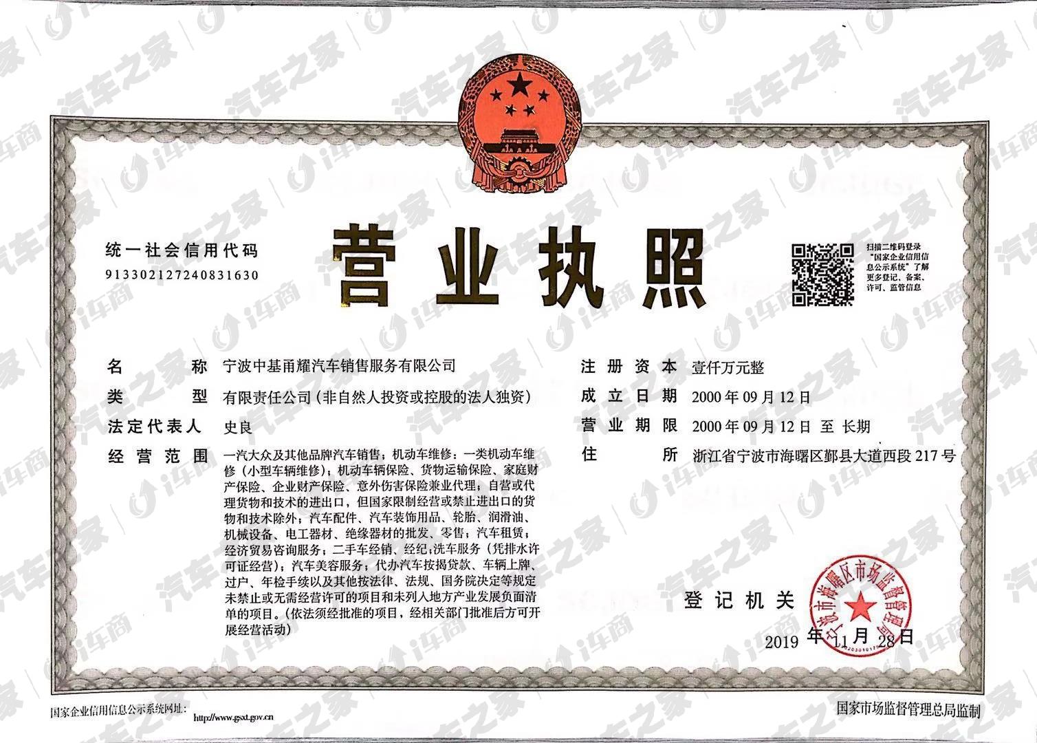 宁波中基甬耀汽车销售服务有限公司是中基宁波集团股份公司旗下汽车板块成员之一,成立于2000年9月,是一个集整车销售、售后服务、配件销售、信息反馈等服务为一体的一汽-大众大众品牌特约经销商。