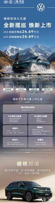 • 核心产品亮点:第五代EA888动力、AI车机+高速NOA、2米宽体大五座空间