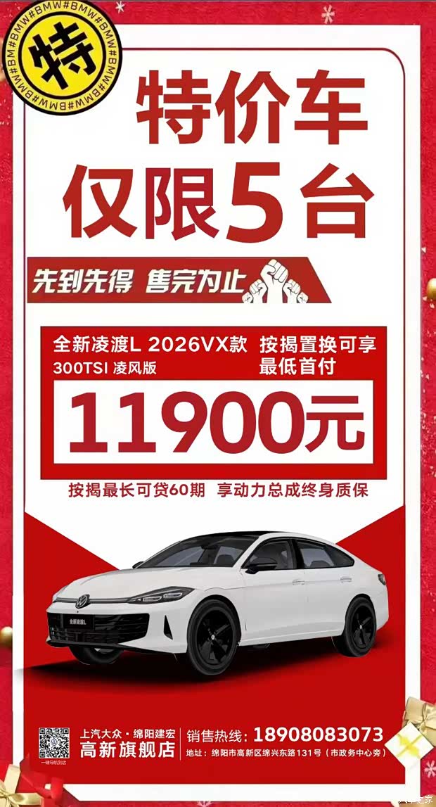 宽体轿跑凌渡L330TSI凌风版 按揭置换最低首付1.19万起