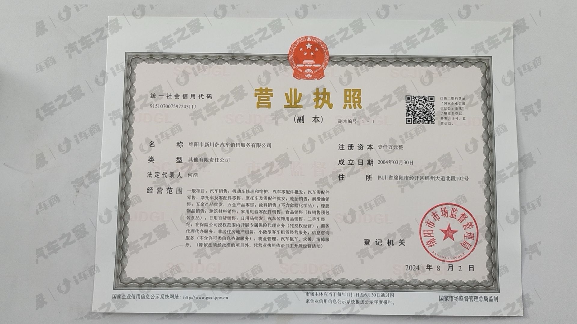 绵阳市新川萨汽车销售服务有限公司