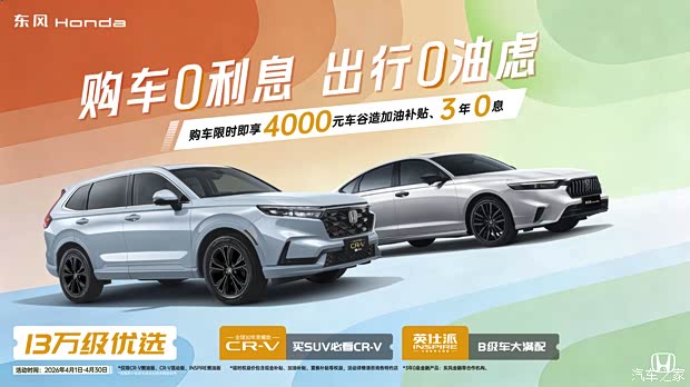 CRV汽油版13.79万起、HRV汽油版10.99万起、英仕派汽油版12.88万起