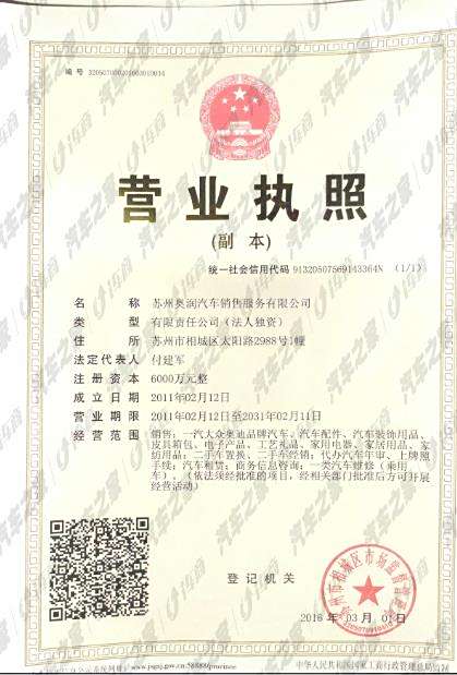 苏州奥润汽车销售服务有限公司