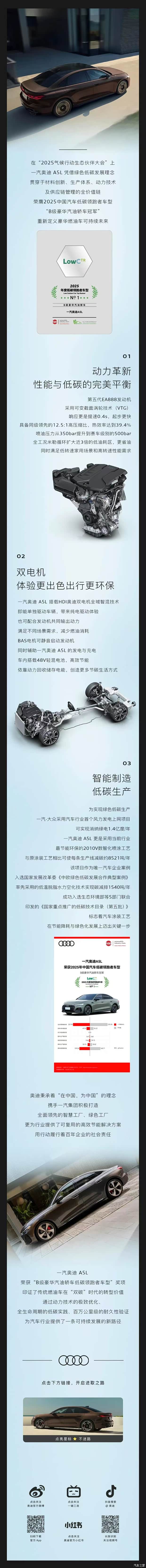 荣耀加冕 奥迪A5L 2025中国汽车低碳领跑者