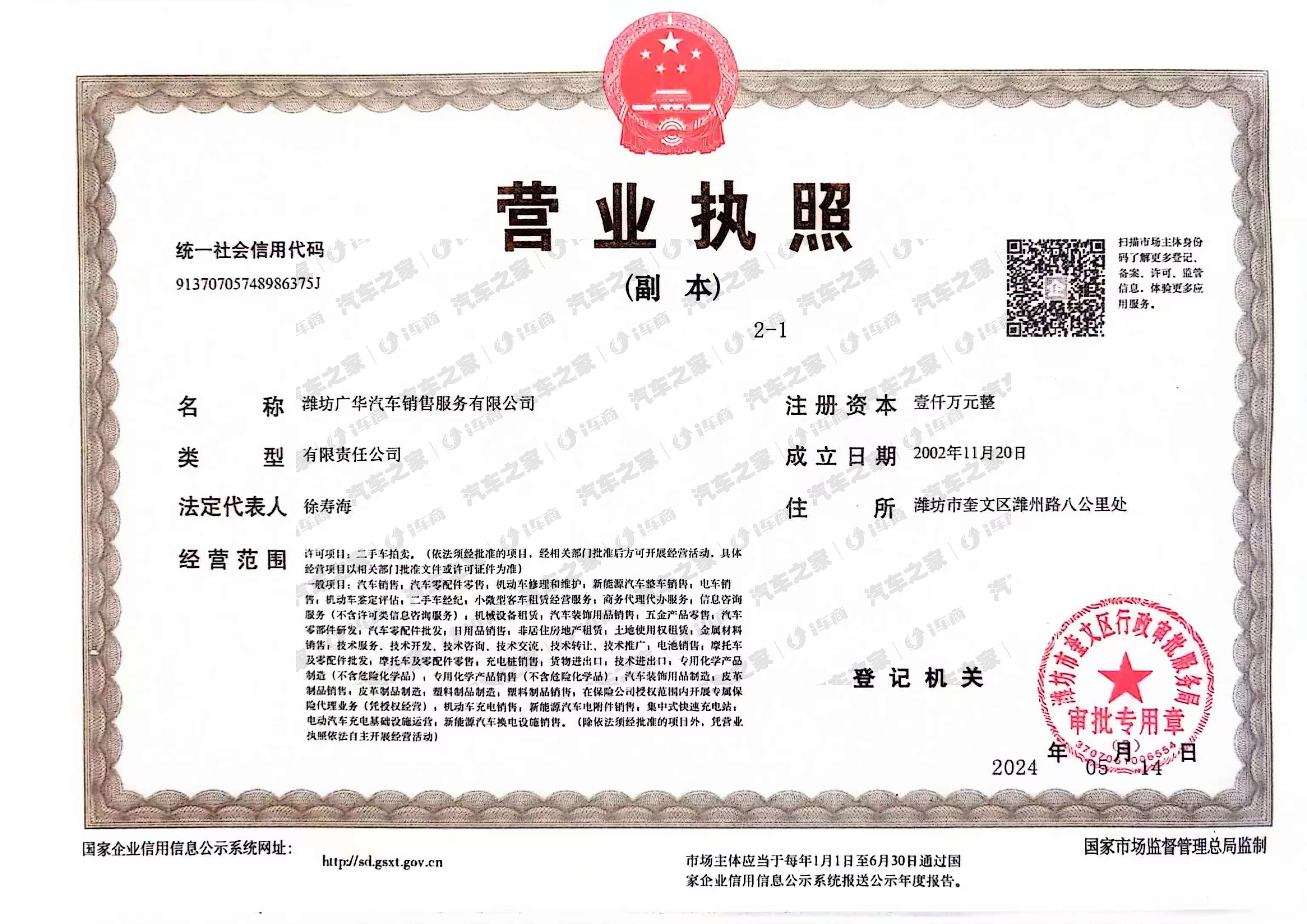 6、 人员:潍坊地区厂家专业认证销售顾问最多、服务顾问和维修技师年限最长、二手车技师最诚信专业,为您的爱车保驾护航。