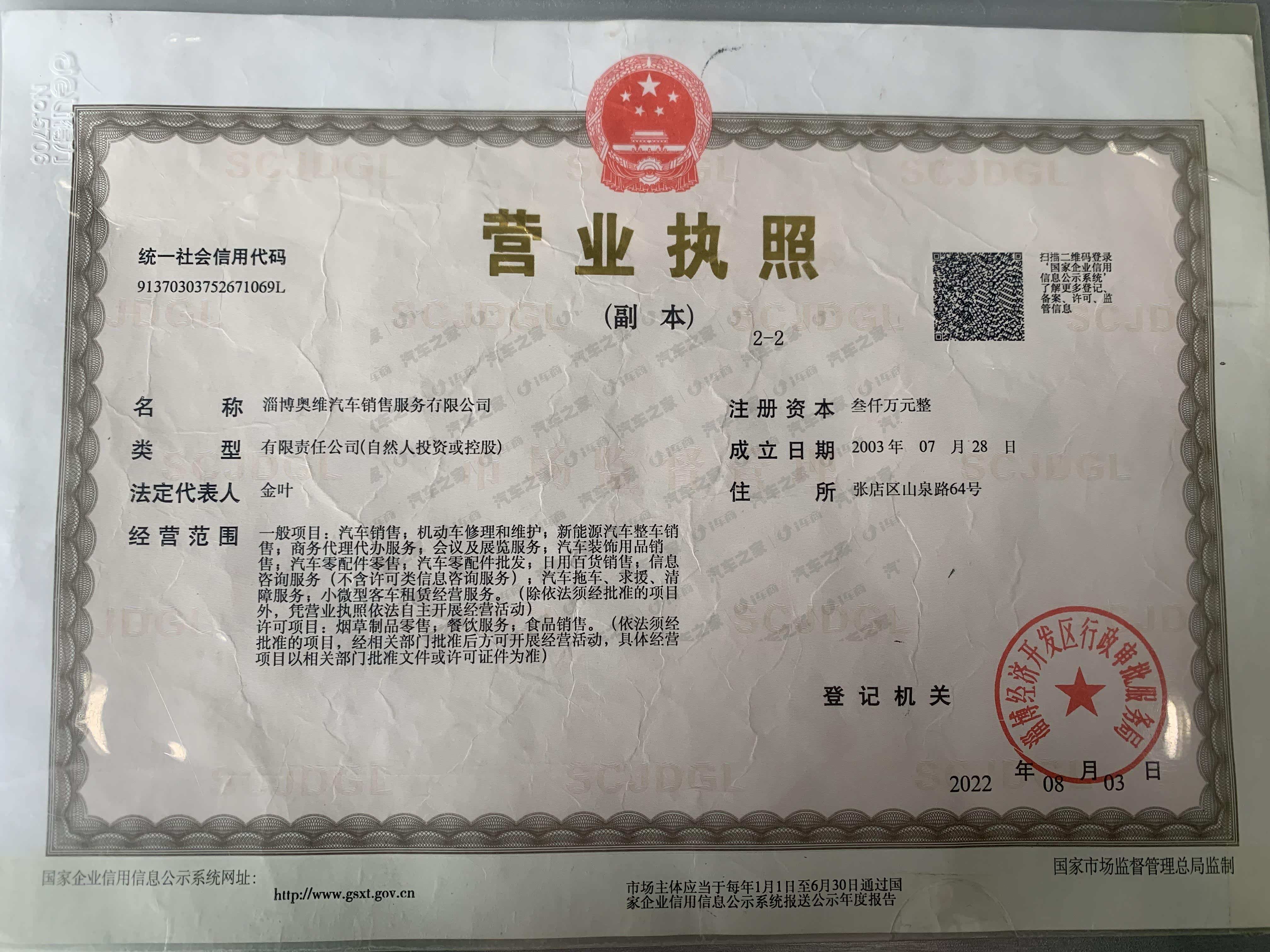 淄博奥维汽车销售服务有限公司