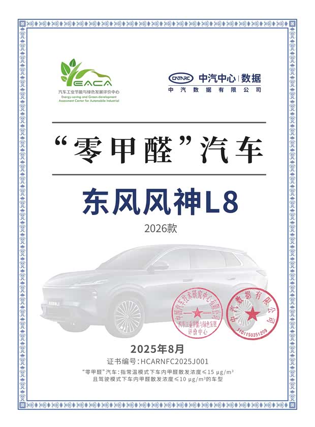 细节同样拉满,风神L8全车拥有28处储物空间、后排老板键、双层夹胶隔音玻璃、米其林静音轮胎、26处隔音包覆盖……东风风神L8在“静”与“净”上都下了功夫,甚至获得了中汽中心的“零甲醛汽车”认证。